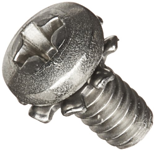 410 Stainless Steel Pan Head Machine Screw With External-Tooth Lock Washer, 18-8 SS Finish, Meets ASME B18.13, #1 Phillips Drive, #4-40 Thread Size, 1/4" Length, Fully Threaded, Import (Pack of 50)