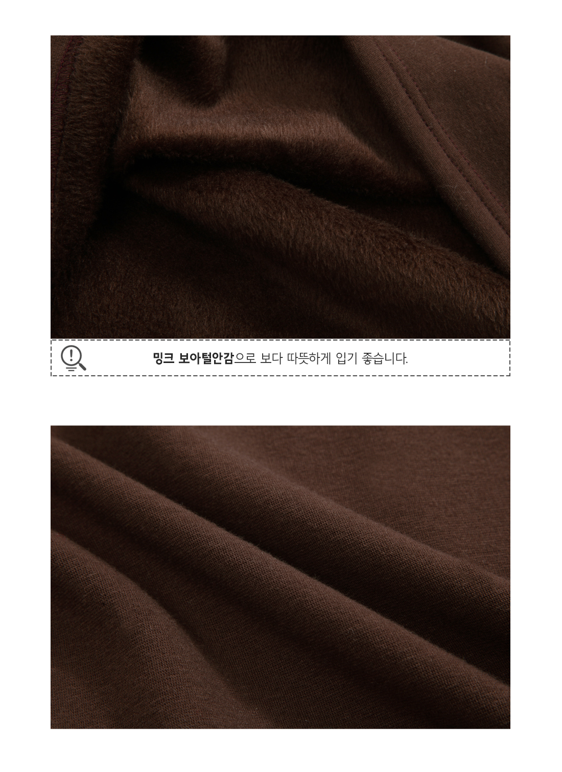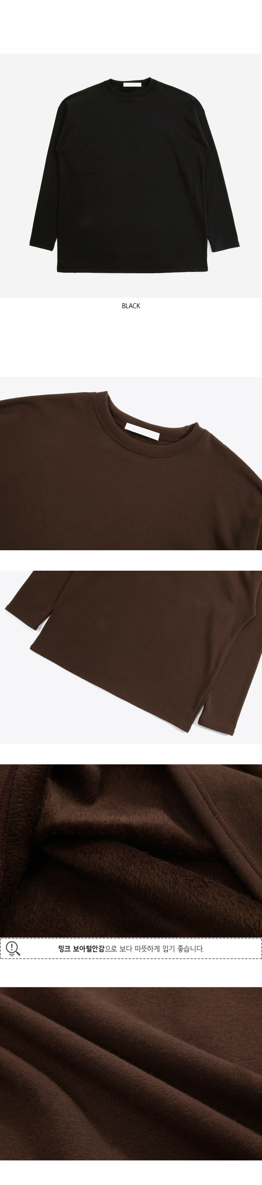 -한겨울 한파, 찬바람에도 따뜻한 밍크 보아털 기모 티셔츠입니다!-부드러운 착용감으로 기분 좋은 하루를 선사합니다. -일반 기모의 1.5배 따뜻한 보온성과 찬바람 숭숭 들어오는-니트 종류 안에 받쳐 입어주기만 하면 찬바람 완벽차단 가능!-부들부들하고 따뜻한 밍크 보아털의 놀라운 하루를 만끽해보세요.
