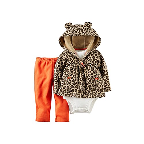 -. Title : Carter's Full Zip Cheetah Hoodie with Ears, Bodysuit and Pants - Baby Girls 9m