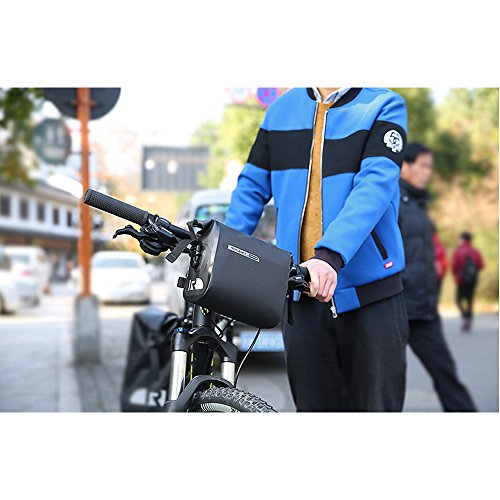 ◆Type: Bike handlebar bag ◆ Material: Waterproof PVC net clamping cloth ◆ Color: Black ◆ Size :7.87" x 10.23" x 3.54"/20cm x 26cm x 9cm ◆Capacity: 2.5L-3L ◆ Weight: 280g Package includes: