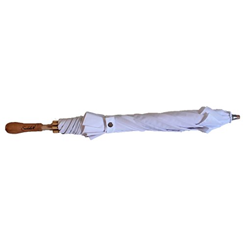 -. Feature : Enhanced with a sun blocker to provide UPF50+ protection, which will keep you cooler and protect your skin, without giving you hat-hair. The sun blocker also causes water to bead off the canopy, so your parasol will protect you if you get caught in the rain. / Wind vent built into the canopy, to allow any breeze to dissipate ensuring that your sun umbrella will not invert. / Quality mechanism and fibreglass ribs, for a durable and long lasting sun umbrella / Stunning and unique straight canopy, which allow the breeze to pass straight across rather than get caught in the curve of a rain umbrella. / The open canopy diameter (80cm or 31.5 inches) is the perfect size for a sun umbrella. It can be angled to maximise your shade to protect your upper body, whilst being unobtrusive in a crowd. The full length of the parasol (58cm or 23 inches) will fit inside luggage, making it ideal for travellers. Weighs just 250 grams, making it comfortable to hold for any length of time.