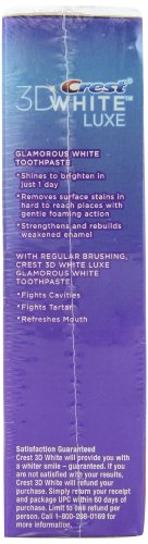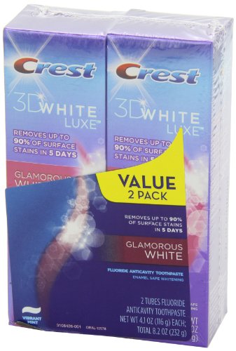 Glamorize your smile daily. Make your smile the first step in your morning beauty routine with Crest 3D White Luxe Glamorous White toothpaste. Designed to provide a radiant shine, 3D White Luxe Glamorous White gently, but effectively takes your smile from dull to dazzling. That's because it not only removes up to 90% of surface stains, but the unique Whitelock Technology actually prevents new stains from forming - even in the microfine lines of your teeth. Combining micro-cleansing teeth whiteners and a refreshing foaming action, 3D White Luxe Glamorous White helps make your smile whiter, so every day can be a glamorous one.