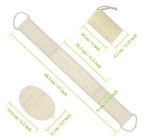 Do you dreams of have clean and smooth skin. The secret to clear and smooth skin is exfoliation. This beautiful Complete Set include Exfoliating Loofah Long Back Scrubber, loofah columnar bath scrubber and oval face brush , help you cleaning your back, neck, shoulders, feet, and other hard to reach areas.. Helps eliminate dry skin, acne, eczema and more. Promoting blood circulation, accelerating metabolism.