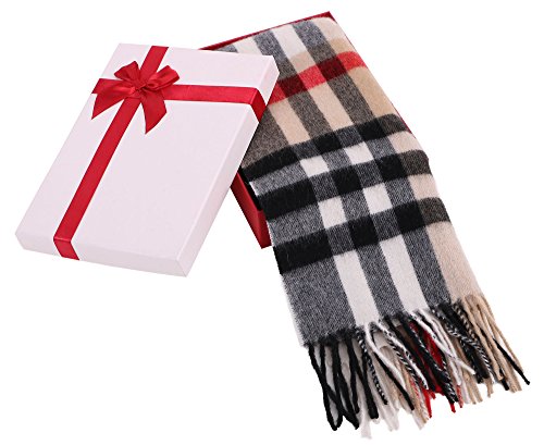 Item Material: Cashmere Measurement: Scarf: 64" x 11.5" (without tassel), Tassel Length 3" Gift Box: 6.7" x 9.4" Item Color: As shown in pictures