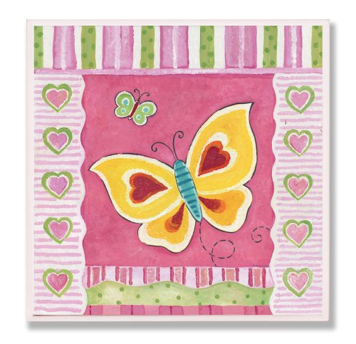 The Kids Room by Stupell Yellow and Red Butterfly with Stripes Square Wall Plaque