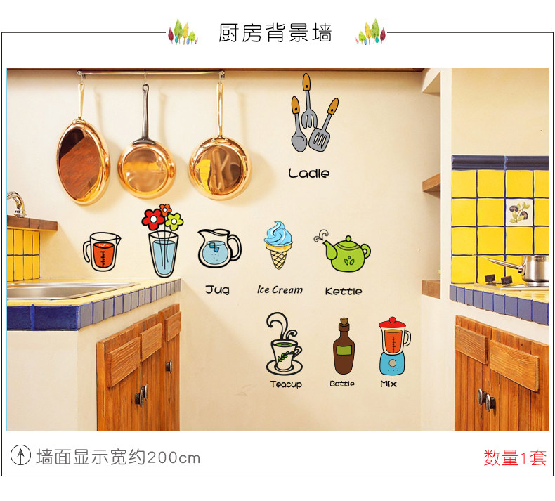欢乐厨房橱柜贴纸冰箱贴装饰品店铺橱窗客厅玻璃门防水可移除墙贴