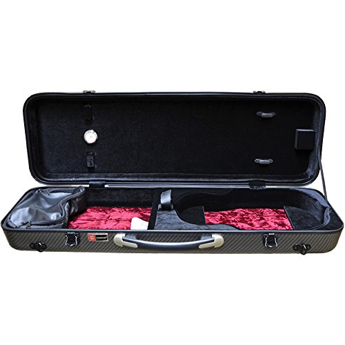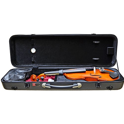 -. Feature : Sturdy high-tech composite exterior. Highly anti-impact, waterproof and super light weight. / Thick water resistant rubber strip case seal. High quality latches and integrated hygrometer. / 9.3'x3.9'x2.6' large accessory compartment can stock your shoulder rest / 2 bow holders and a transparent protective tube for strings / Deluxe backpack straps and thick violin cover