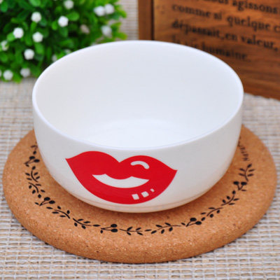 Cute cartoon faces bowl, bud expressions gathered, funny face, big red lips, pretty beard, the baby will love to eat ceramic materials, fine and smooth, easy to clean - environmentally friendly
