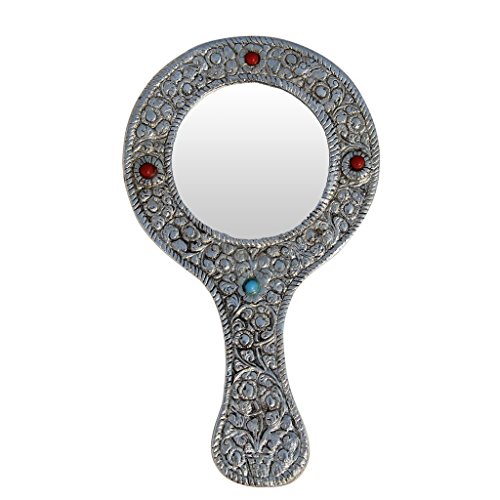 ARM STYLE Beautifully Designed Silver Metal Handicrafts Paradise Hand Mirror Round shape BEST FOR TRAVELLING