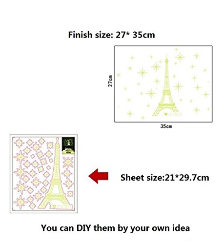 -. Binding : Kitchen -. Brand : Amaonm -. Color : glow -. EAN : 0711301608900 -. Feature : Easy to apply, remove, reposition, and reuse without leaving damage or residue / Lovely design, easy and removable wall stickers, 100% brand new! / The reference images are just for displaying its effect, and the real size please refer to the entity, and according to your room layout to apply. / Size:21*29.7cm, Finish reference picture size:25*37cm / Provides an interesting focal point to any room and bring the outdoors into your home with this wall -. Label : Amaonm -. Manufacturer : Amaonm -. ProductGroup : Home -. ProductTypeName : HOME -. Publisher : Amaonm -. Studio : Amaonm -. Title : Amaonm® Removable PVC Glow in the Dark I Love Paris Eiffel Tower Wall Decals Home Art Decor Noctilucent Wall Sticker Luminous Light Stars Wall Stickers for for Kids Room Bedroom Celling Decorations -. UPC : 711301608900