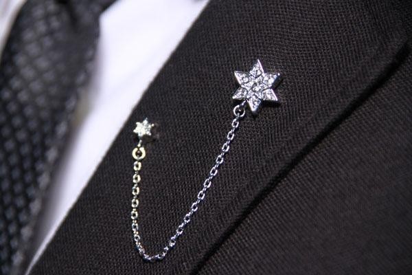 アメリカで100年以上に渡り、数々のお客様にご愛用いただいている紳士用アクセサリーの老舗ブランド「SWANK」社の個性豊かなアクセサリーです。ヘキサグラム(六芒星)のブローチがさりげなく光る、大人の魅力を演出するピンズです。 |