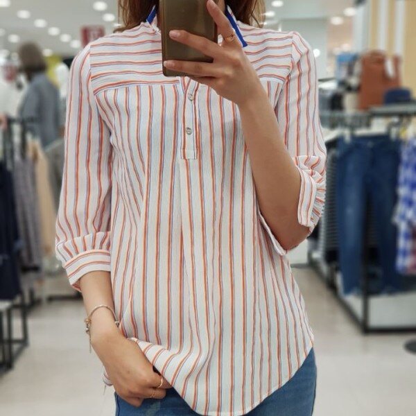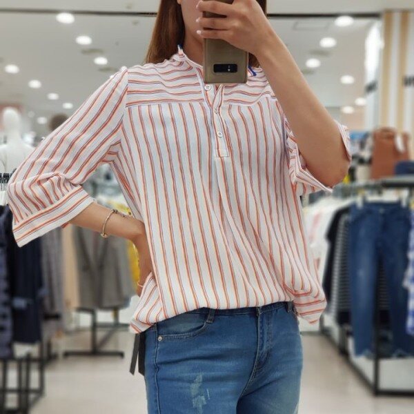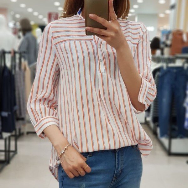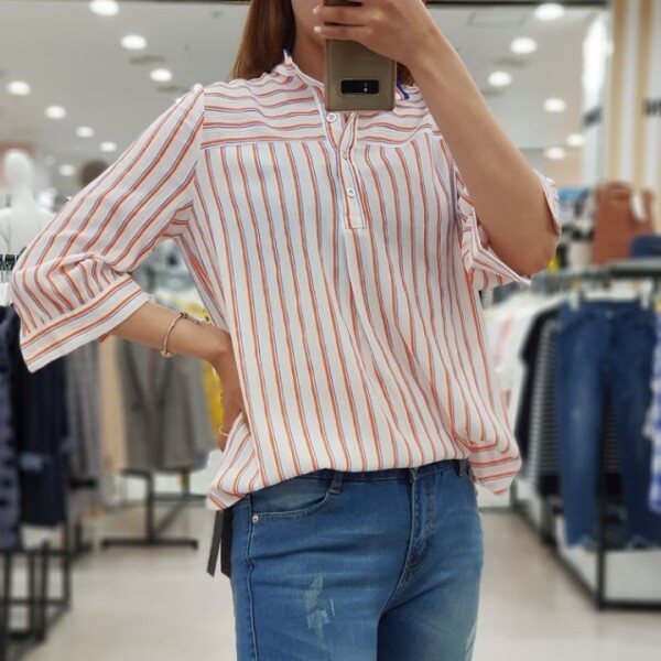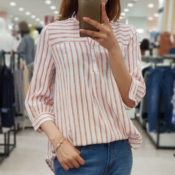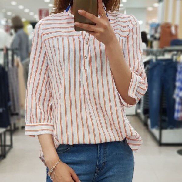 산뜻힐 스프라이프 색감으로 차분하면서 화사하게 입기 좋은 블라우스 입니다.버튼으로 오픈 클로징 편안하게 가능하시며, 청바지, 슬랙스 등 두루두루 데일리하게 입기 좋은 상품입니다.