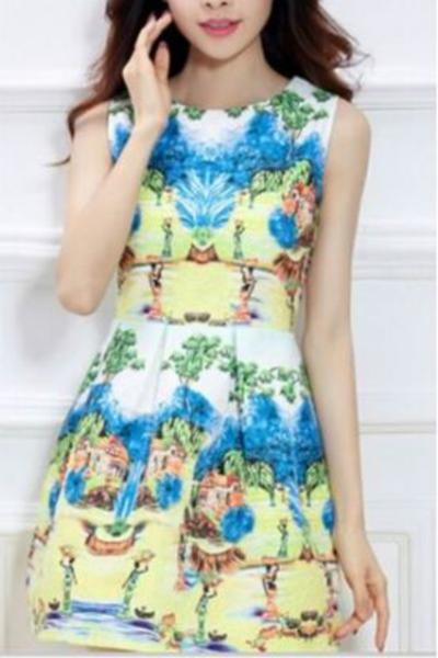☆色鮮やかなプリントがホワイトドレスに映えるオシャレなワンピ☆