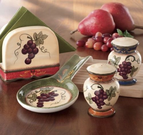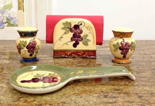 Tuscany Colorful Grapes Hand Painted Table Top set, 84025/28 by ACK