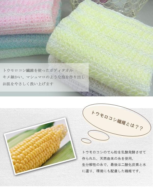 | とうもろこし繊維100%のボディタオル! |
