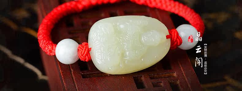 开光和田玉生肖本命佛红绳手链 大势至菩萨生肖属马男女款手串