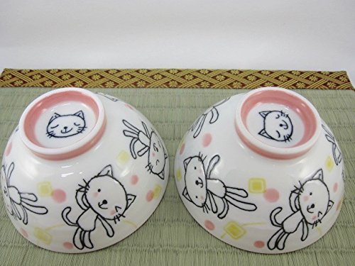 Japanese rice bowl set, porcelain, pretty cats design, set of 2 bowls.