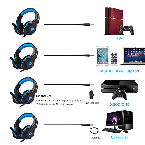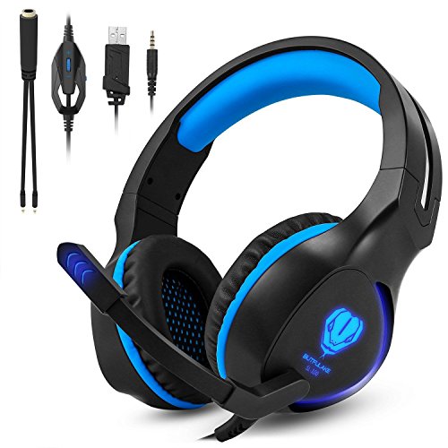 Zenoplige [Gaming Headset fur PS4] Over-Ear Stereo Bass Gaming Kopfhorer mit Noise Isolation Mikrofon LED Licht fur PS4 PC Laptop Computer Mobiltelefone