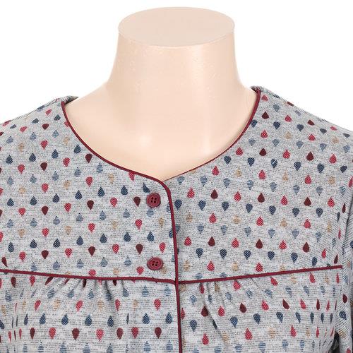물방울 패턴의 로맨틱 폴리 기모 잠옷 입니다. 신축성이 좋고 부드러우며 보온성이 매우 좋은 제품입니다.카라 부분이 라운드로 되어 편안한 스타일로 전체 연령층 착용 가능합니다.홈웨어로도 편안하게 입기좋은 귀여운 느낌에 제품 입니다.커플 세트 남성 잠옷 MP8570A , 원피스 스타일 GW8570A 별도 구매 가능 합니다.