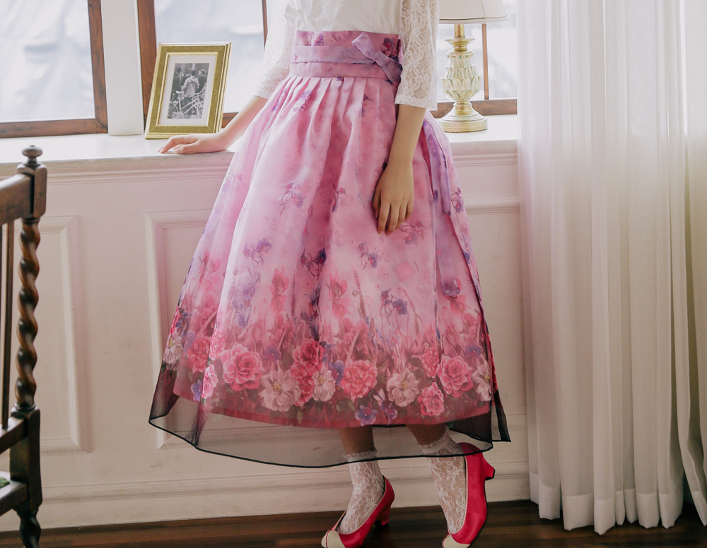 실과바늘이 선보이는 플라워가든-핑크와인 허리치마는 예쁜 꽃들이 만개해서 플라워가든을 연상케 한답니다.