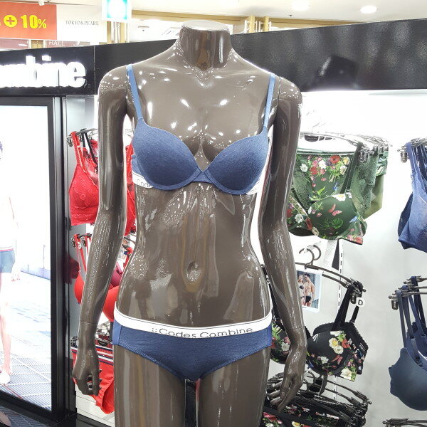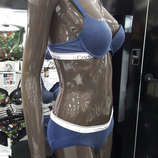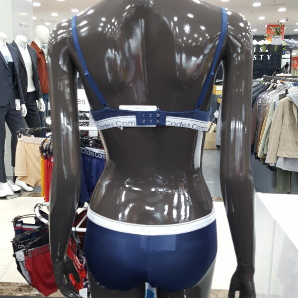 네이비 색상의 면 제품인 코데즈 브라팬티세트 입니다. 팬티 뒷면은 햄라인의로 처리되어 있어서 바지나 원피스 착용시 힙라인을 매끈하게 잡아 줍니다.