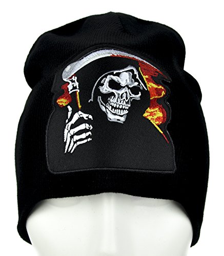 Burning in Hell Grim Reaper Beanie Alternative Clothing Knit Cap Death Scythe