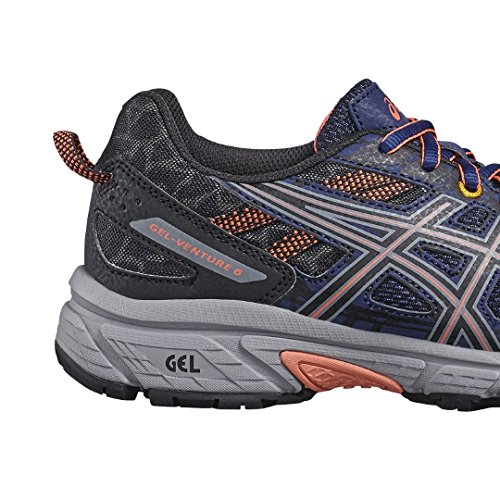 Studio : Asics Publisher : Asics Binding : Apparel Product Description The Asics GEL-Venture 6 trail shoe features a totally redesigned midsole and upper construction designed for everyday comfort and fit for a variety of terrains. Rearfoot GEL cushioning provides excellent shock attenuation and a one piece outsole with aggressive multi directional lugs provide inspiring traction. The upper utilizes synthetic materials with a stitched down toe bumper for added durability and toe protection.Features:- Asics High Abrasion Rubber. - Rearfoot Gel cushioning system.- Trail specific outsole.- Reinforced toe bumper. 0