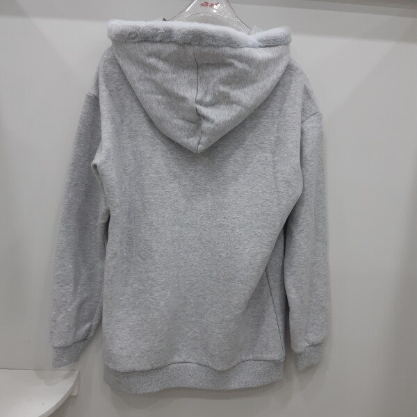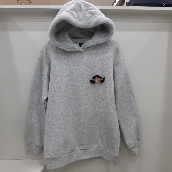 모자부위에 퍼가있어 더욱 여아스러운 느낌의 롱후드맨투맨
