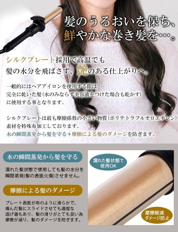 | シルクプレート採用で、髪の潤いを保ち、艶やかな巻髪を・・・。 |