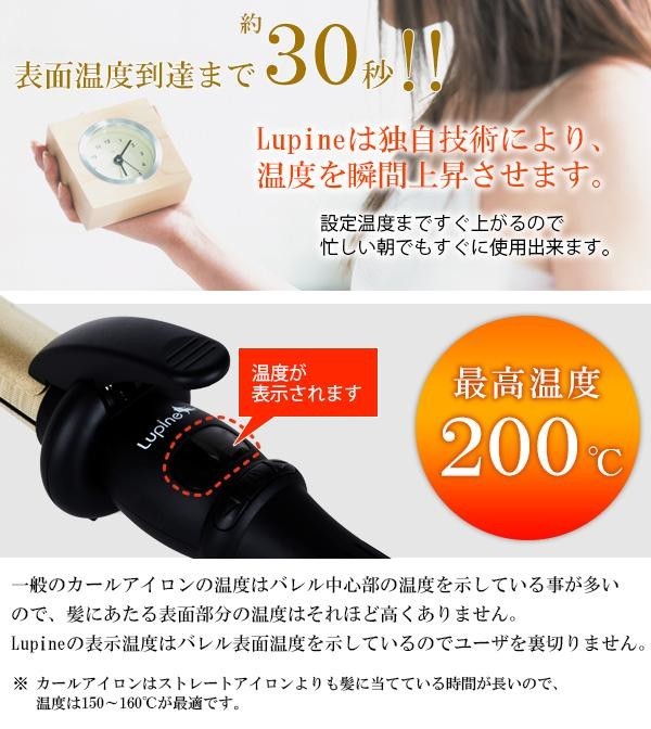 新世代シルクプレート採用で高温でも髪の水分を飛ばさず、艶のある仕上がりへ。表面温度到達までは30秒、また濡れた状態でも使用ができるので、忙しい朝にも嬉しい。温度は最高200度まであがります。 |