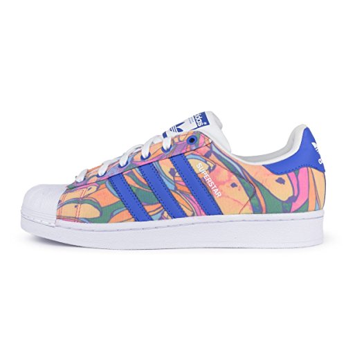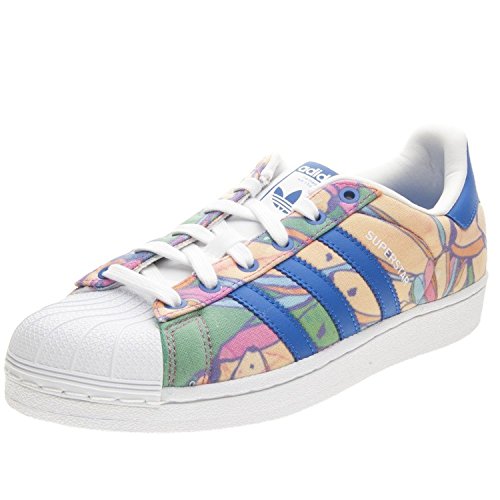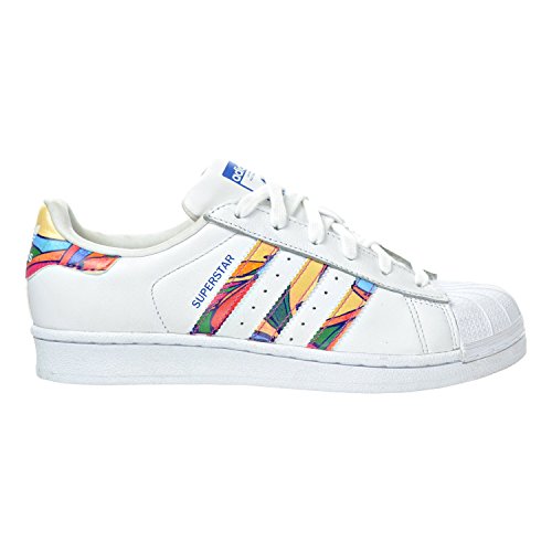 The beauty of the adidas superstar sneaker is its adaptability. For these women's shoes, a colorful print from brazil's the farm company highlights authentic details, like the premium leather upper, rubber shell toe and herringbone cupsole.Feature