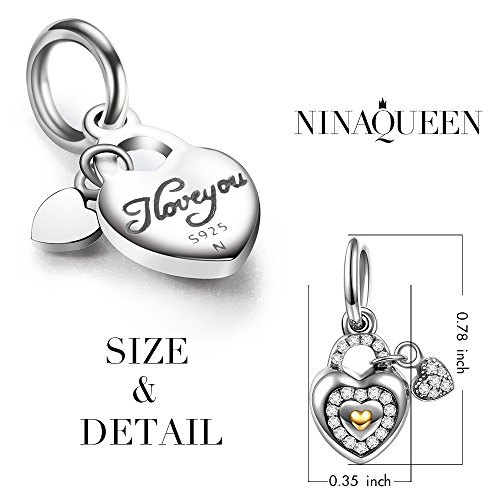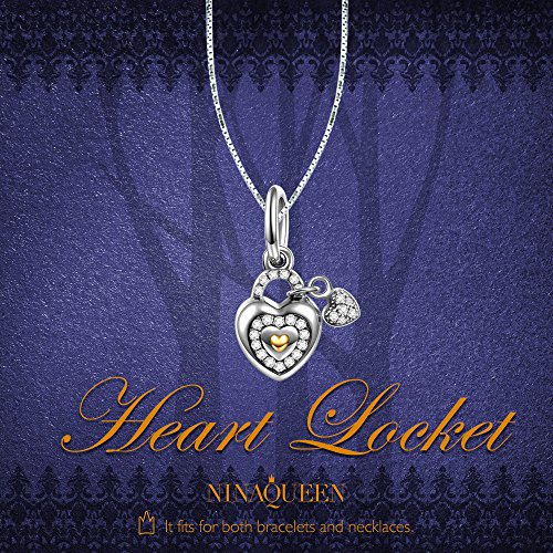 Ninaqueen 925 Sterling Silver Cubic Zirconia Lock Heart Dangle Charm