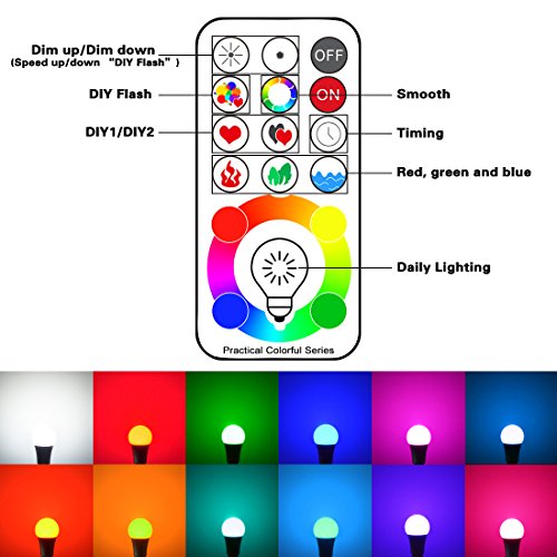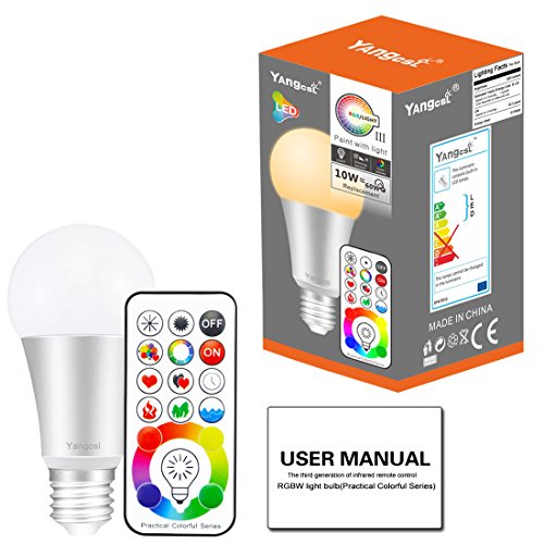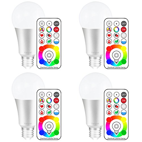 Yangcsl E26 Dimmable Color Changing LED Light Bulbs with Remote Control, Memory & 3-Way, Daylight White & RGB Multi Color, 60 Watt Equivalent (4 Pack)