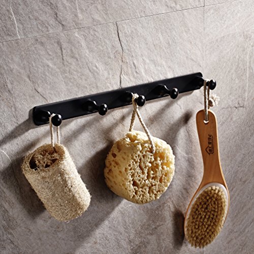 Luxury Solid Brass Single Rack Oil Rubbed Bronze Finish Wall Hanger Clothing Pegs Hooks Wall Peg Rack (Set of 5 Hooks)