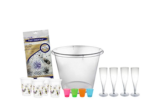 Party Essentials 108 Piece New Year's Eve Celebration Kit with Extra Large Ice Bucket, Clear/Neon Bright
