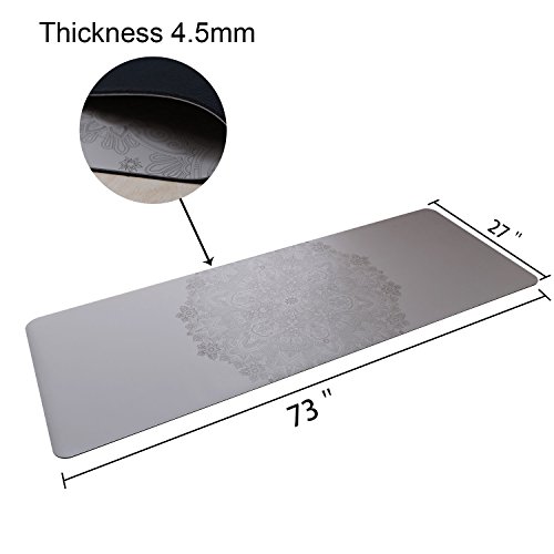 - EASY TO CARRY:Thickness:4.5mm (approximately 3/16 inch),Length: 72.8 inches (185 cm),Width: 26.8 inches (68 cm); This heavy duty mat comes with a carry bag and shoulder strap that’s easy to carry