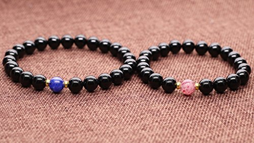 실러를 숨긴 산 스톤과 흥을 깸 의지해 질감이 있는 오니(귀신) 키스를 사용한 페어 팔찌입니다