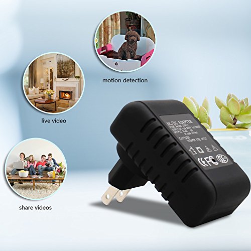 Spy camera built in this black adapter, features HD 1080p App live video viewing, motion detection alerts, micro sd card recording, video sharing etc. Indicator lights can be turn off through icemoon own designed App, discreet and simple to use