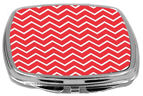 Rikki Knight Compact Mirror, Red Chevron Zig Zag Stripes