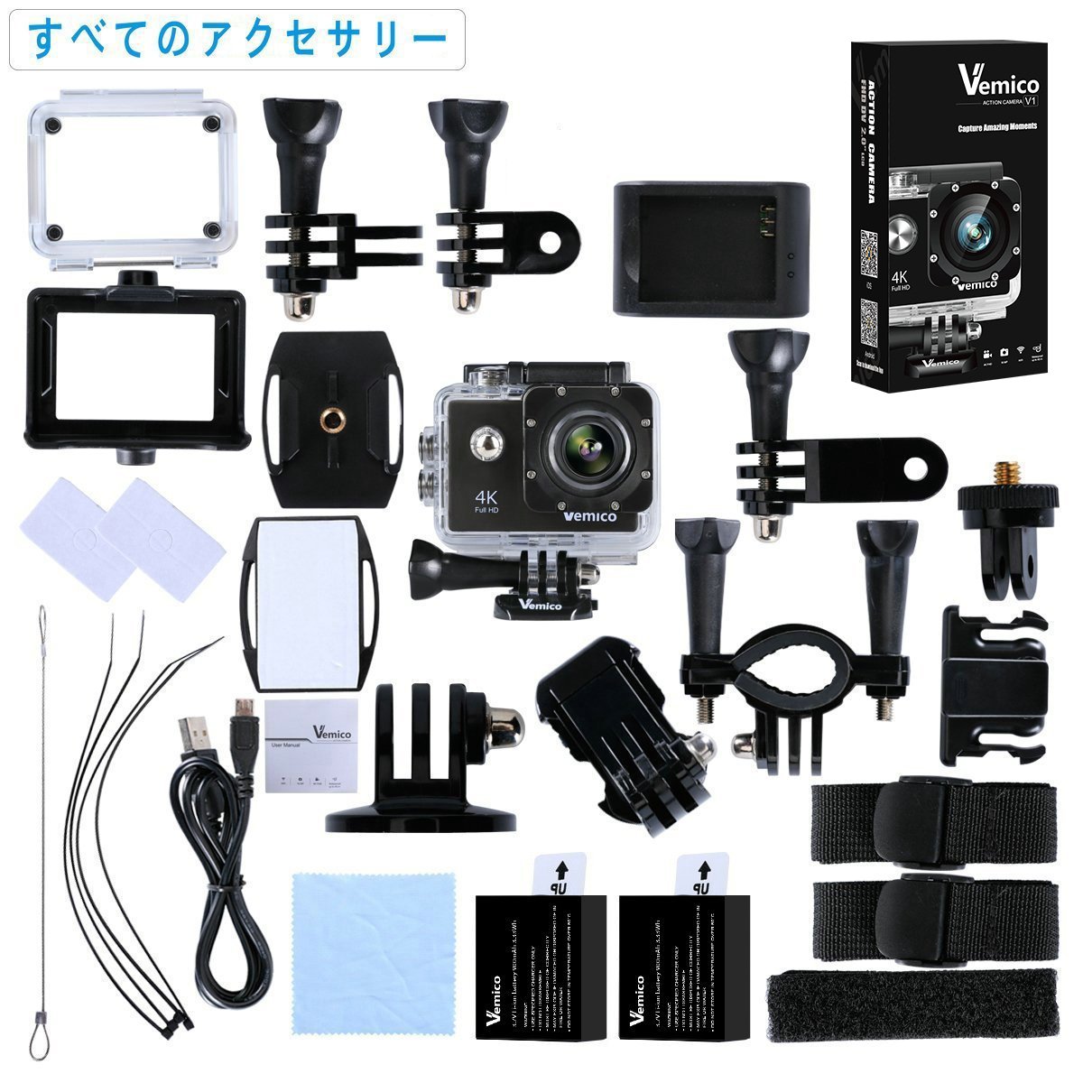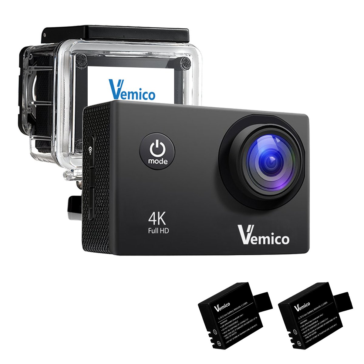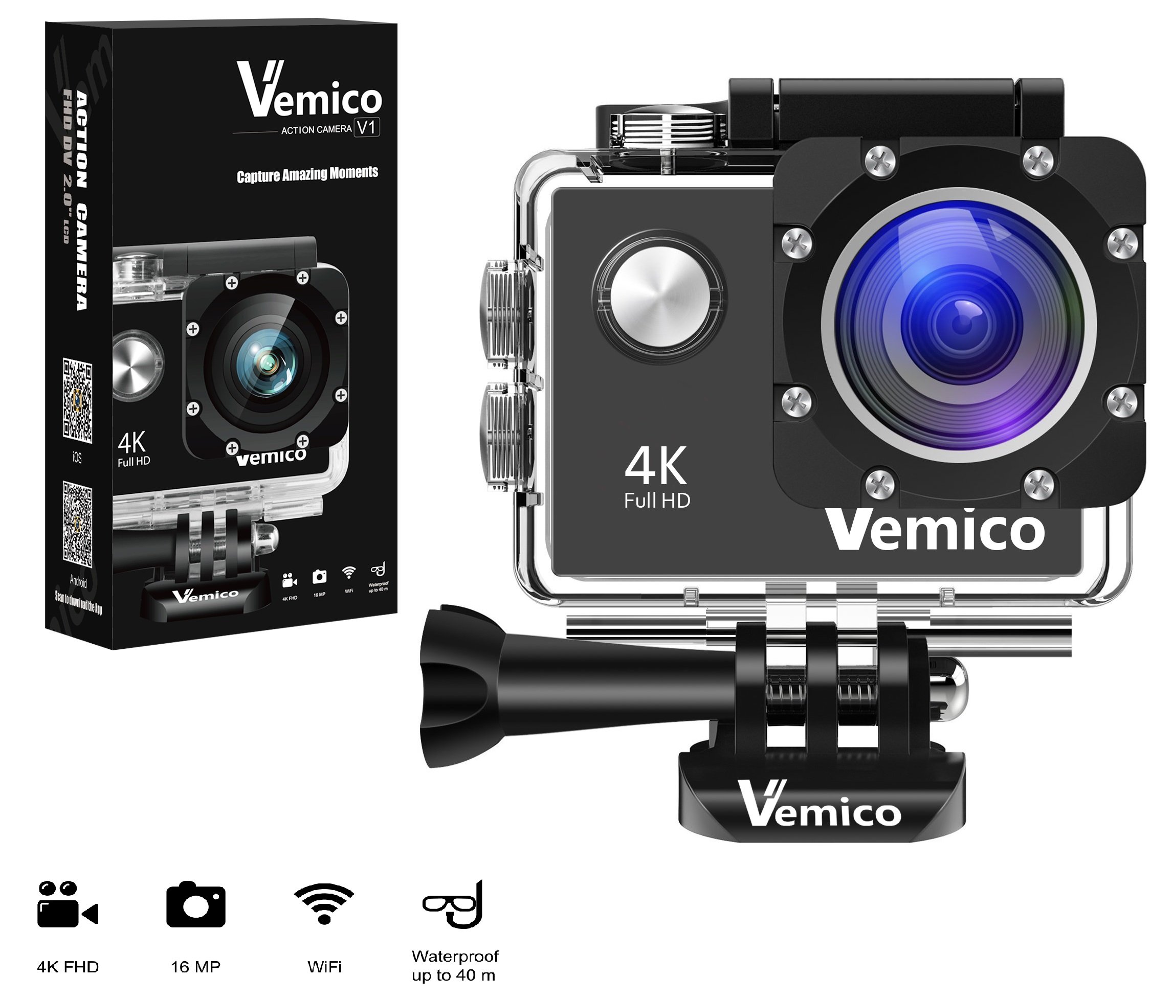 Vemico action camera has a waterproof case that can withstand water depth of 40 m, it is applied to many water movement such as floating submarine, scuba diving, surfing.