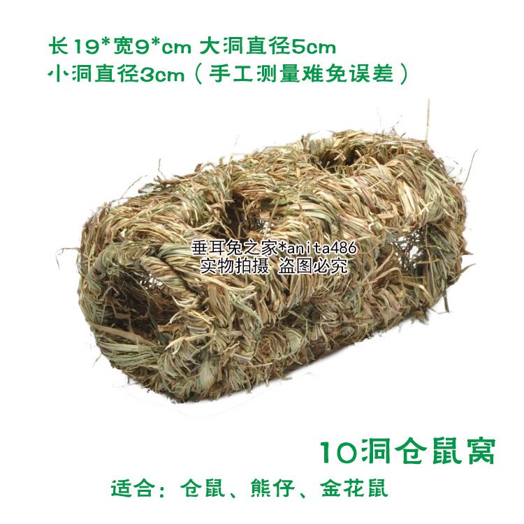 特 色:天然山草编制的组合通道,冬暖夏凉,可供爱鼠睡觉休息。无毒无害,兼具玩耍游戏,啃咬磨牙舒解情绪,满足小动物喜欢躲藏、钻洞的天性,非常好玩哦。