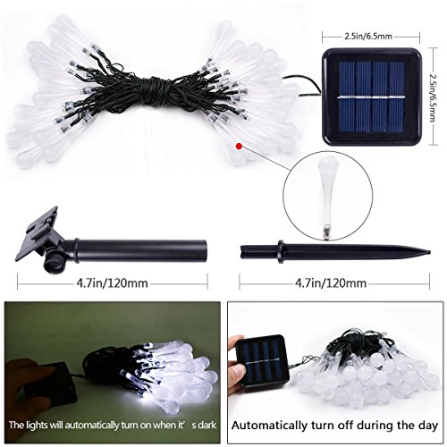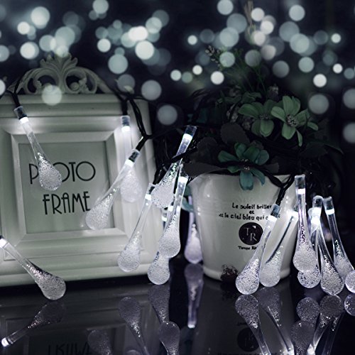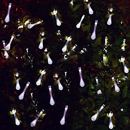 Water Drop Solar Outdoor String Light 30LED 20ft Fairy Starry Raindrop Light Waterproof Solar Christmas Tree Lights Decoration for Patio, Garden, Home, Wedding, Tree, Party, Thanksgiving 2-PACK(White)