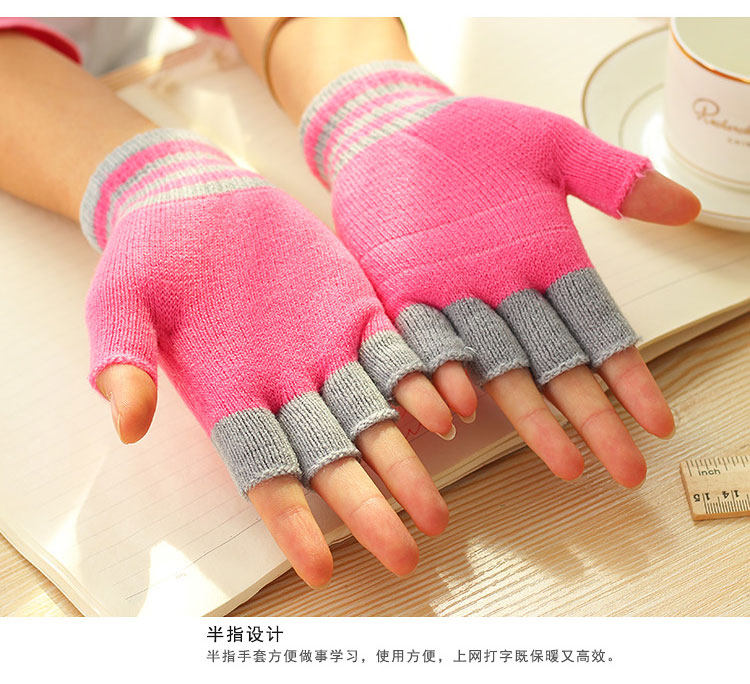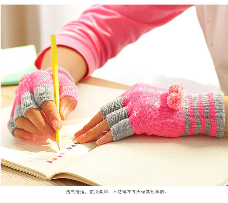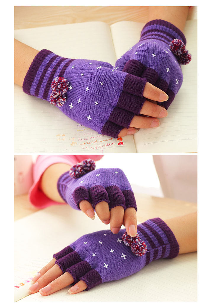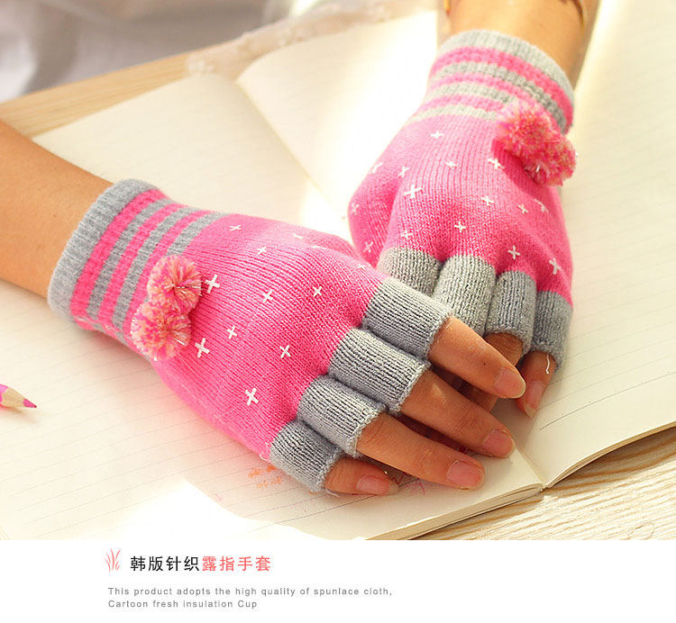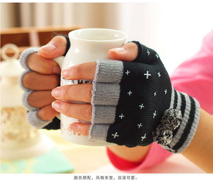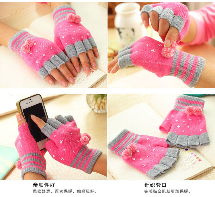 品名:女士毛球针织半指手套