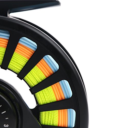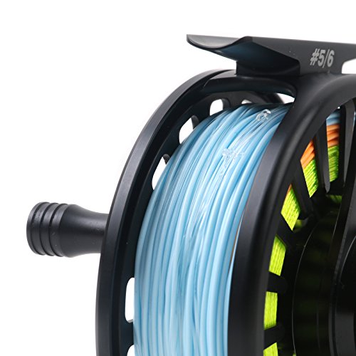 -. Feature : CNC-machined 6061-T6 aluminum alloy for high-impact durability and resistance to corrosion under all conditions / Mid-arbor design strikes a perfect balance between backing capacity and rapid line pickup / Teflon disc and stainless steel drag system with one-way clutch bearing provides smooth, immediate drag engagement / Finely machined and knurled metal screw caps can loosen the spool and easily change settings from left to right hand retrieval / Pre-loaded with WF5F fly line, backing line and tapered leader