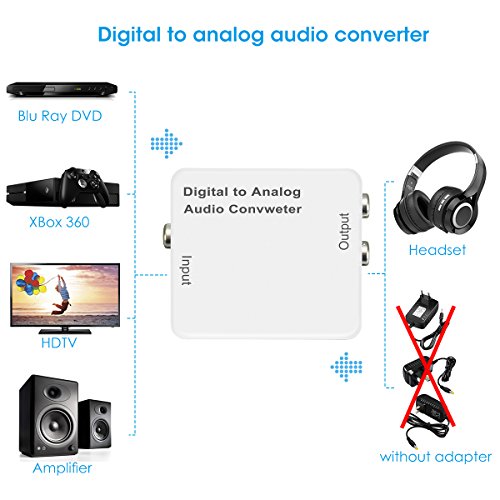 ELEGIANT Digital to Analog Audio Converter with Digital Optical Toslink Coaxial Analog RCA and DC 5V Inputs