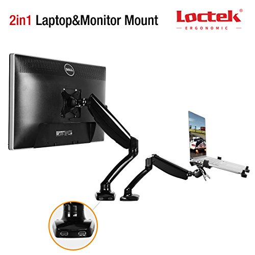-. Binding : Office Product -. Brand : Loctek -. Color : laptop mount -. EAN : 8605741308327 -. Feature : Two front-loading USB 3.0 ports for flash drives, speakers, cell phone charging and other USB gadgets / 360º horizontal rotation; monitor can swivel, tilt and rotate / Gas sP.R.Ing hovering system for smooth vertical positioning / Can be used as a laptop mount or a standard monitor mount - laptop tray is included / Material: Aircraft-grade aluminum arm with scratch resistant injection mold plastic exterior -. Label : Loctek -. Manufacturer : Loctek -. MPN : D -. PackageQuantity : 1 -. PartNumber : D -. ProductGroup : Office Product -. ProductTypeName : OFFICE_PRODUCTS -. Publisher : Loctek -. Studio : Loctek -. Title : LOCTEK 2 in 1 Monitor&Laptop Notbook Mount Stand Full Motion swivel gas sP.R.Ing Height Adjustable Articulating Desk top Mount Monitor Arm workstation support LED/LCD/PDP Computer Monitor Black