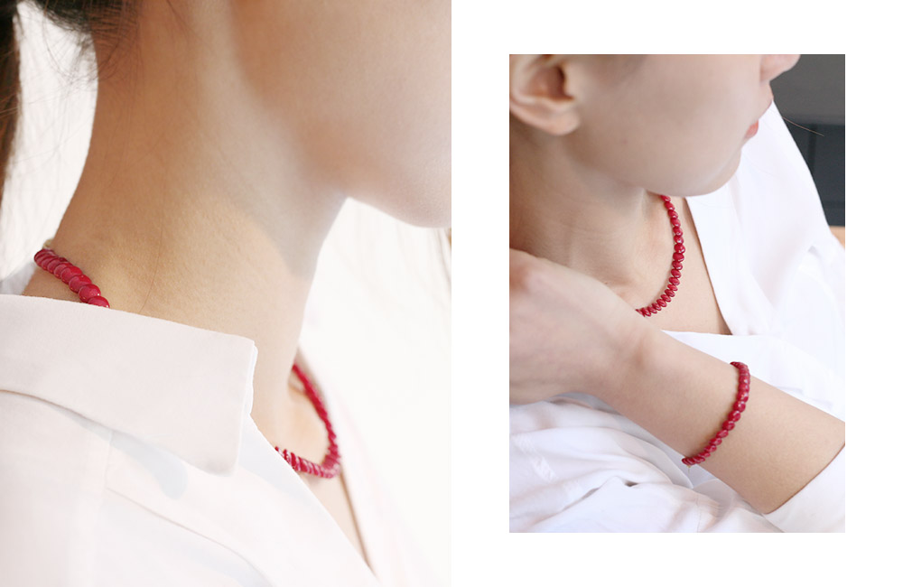 | Product Info. · 상품명 : 아멜리에 목걸이 · 사이즈 : 42 (단위:cm) · 소재 : 원석(산호석), 매듭(실버 925) · 컬러 : 원석(버건디), 매듭(골드) · 상큼한 버건디빛 원석으로 된 네크리스입니다. · 발랄한 분위기를 연출하지만, 원석 자체가 버건디톤이기 때문에 고급스러워 보입니다. · 제조국 : 한국 · 제조사 : 라땅뜨 자체제작(O)/ 협력업체 · 쥬얼리 제품 특성상 착용흔적(스크래치, 부품분리)이 있을 경우 교환및 환불이 어려우므로 이점 양해 부탁드립니다. · 모니터에 따라 색상이 조금씩 달라 보일수 있습니다. 이는 하자의 사유가 되지 않습니다. |