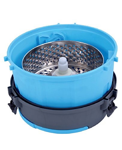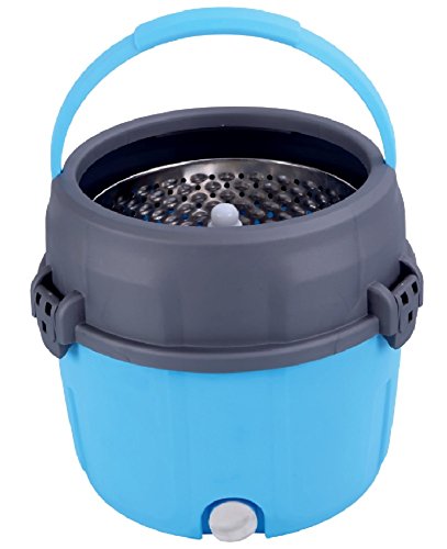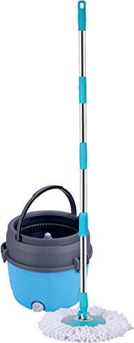 Fill the heavy duty plastic 2 gallon bucket until the indicator and dunk in the Mop. Unlocking the lever will enable spin mode, Slightly bop the mop up and down to enable the spin. The mop is thoroughly rinsed!