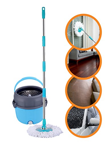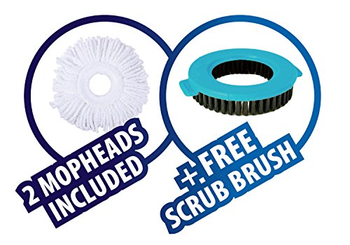 2 Super absorbent microfiber mop heads will leave your floors clean and dust free. Exclusive scrub brush included, for that stubborn spot.