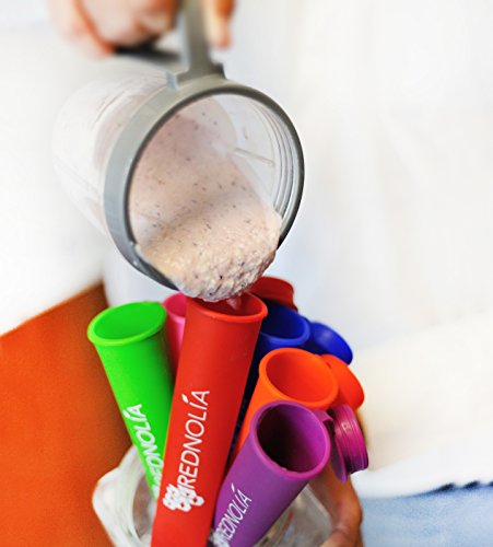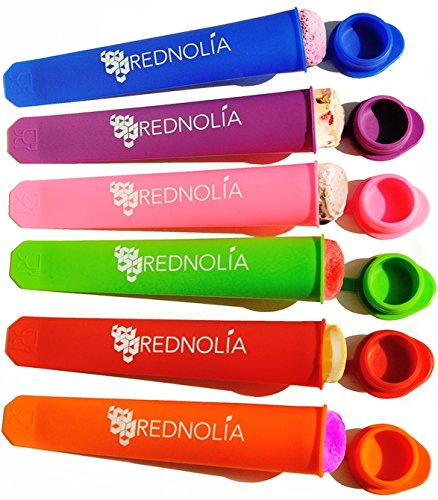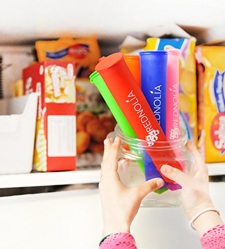 Rednolia Popsicle Molds and Ice Pop Maker with Attached Lids - Bonus Ice Pop Mold Recipes Included - Multi-Color. [Set of 6]